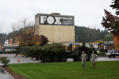 The tree was selected by Centralia Downtown Association volunteers and it should arrive Thursday, November 15. This will be the 3rd year in a row that the CDA has coordinated the selection and arrival of the tree in our city. It will arrive by police escort on a military flatbed. The tree is donated by Joint Base Lewis-McChord and our local military personnel provide their services and equipment to transport the tree to the George Washington Park in downtown Centralia.